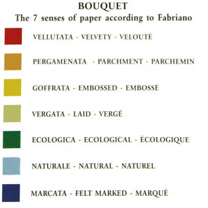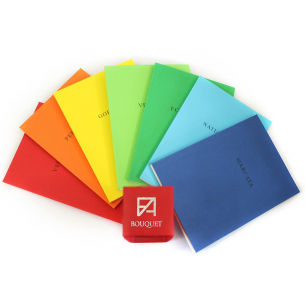 The Bouquet consists of a selection of seven notebooks each containing a different Fabriano paper. Included are vellum, parchment, embossed, laid, ecological, natural and felt marked papers. For ease of selection each notebook has a different coloured cover. The size of each notebook is 10 x 15cm and all books contain 40 sheets.